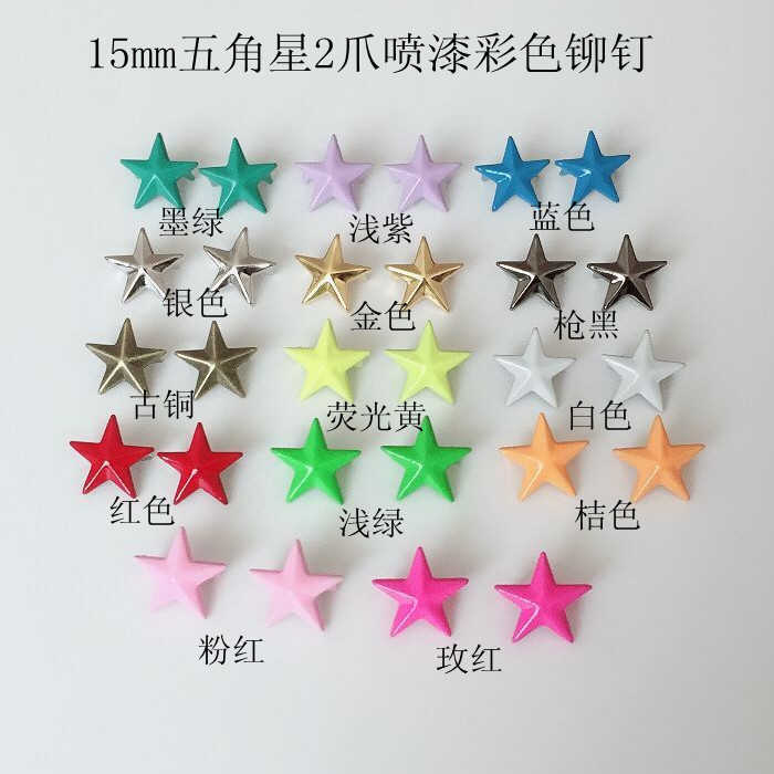 免郵diy朋克鉚釘螢光色服飾配件爪釘五角星鉚釘15mm二爪多色