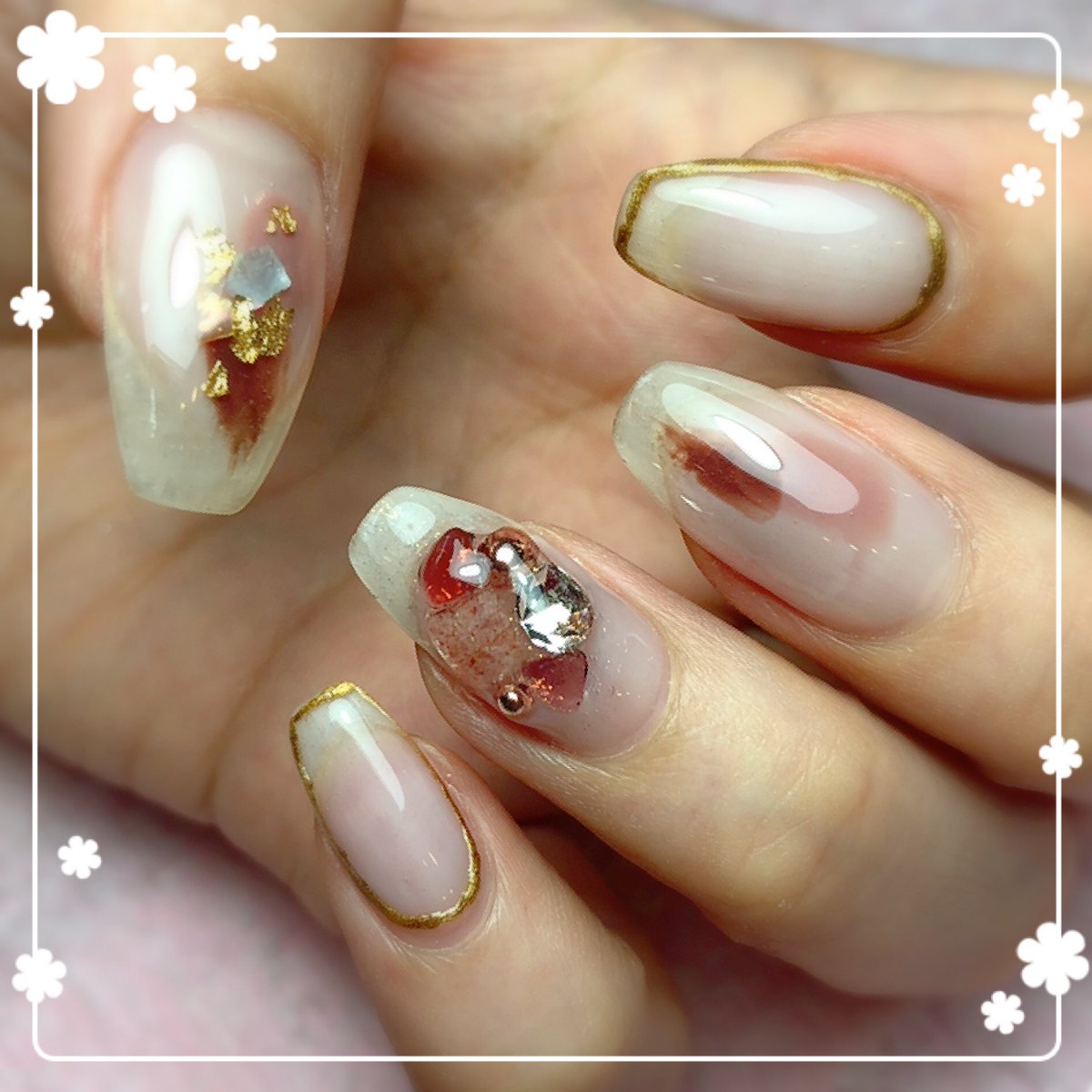 オールシーズン 大理石 ベージュ ピンク スモーキー Renのネイルデザイン No ネイルブック